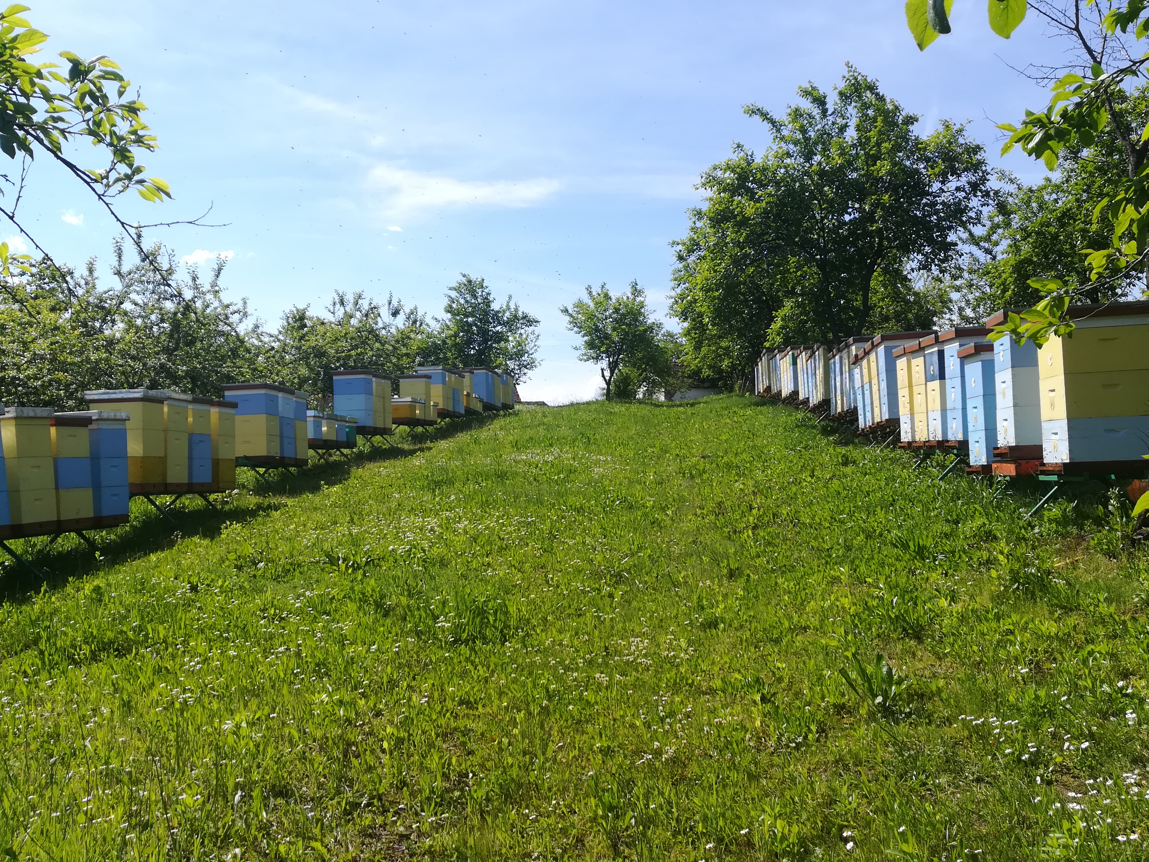 Trenutno posedujemo preko 90 pčelinjih društava. Prema pčelama se odnosimo kao prema članovima naše porodice tj. vodimo računa da imaju dovoljno prirodnog nektara, medne rose, polena kao i pristup ispravnoj i čistoj izvorskoj vodi. Društva se ne prehranjuju veštački već se u drugoj polovini pčelinje paše ostavljaju dovoljne rezerve meda i polena za nastupajuću zimu. Naše košnice su napravljene od prirodnih materijala koji ne dovode do kontaminacije pčelinjih proizvoda i životne sredine. Zahvaljujući veličini poseda uspeli smo da pčelama obezbedimo mir i tišinu.